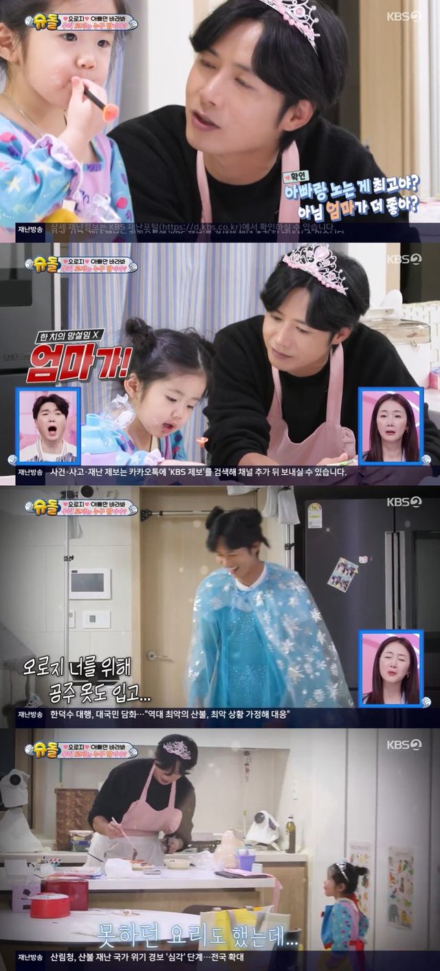 오종혁은 "로지는 공주고, 아빠는 왕비야"라며 로지와 가까워지기 위해 시도하는 모습을 보였다.