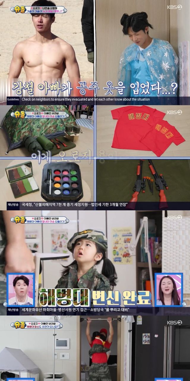 평소 자신을 '로지 공주'라며 공주 놀이에 흠뻑 빠진 로지는 오종혁이 해병대 옷을 입은 모습에 흥미를 보였고, 곧이어 빨간색 티셔츠와 밀리터리 바지를 입어 꼬마 해병대로 변신해 등장했다.