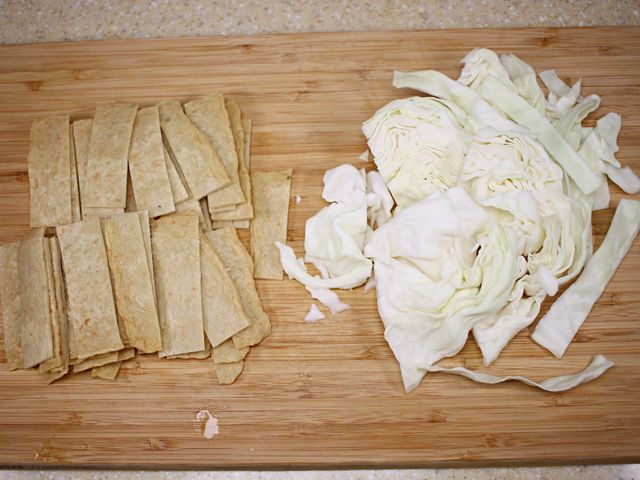 그사이에 어묵이랑 양배추를 썰어주세요.