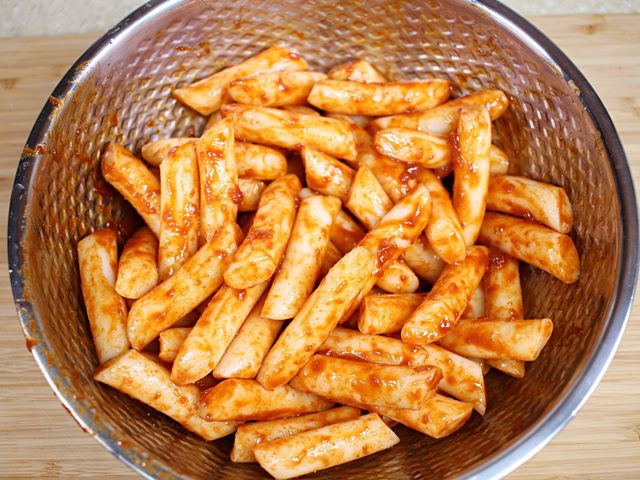 미리 양념해서 5분만 숙성시키면 떡에 양념이 더 잘 배요.