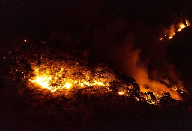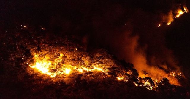 26일 오후 어둠이 내린 경북 청송군 주왕산면 상의리 주왕산국립공원에 산불이 번지고 있다. / 뉴스1