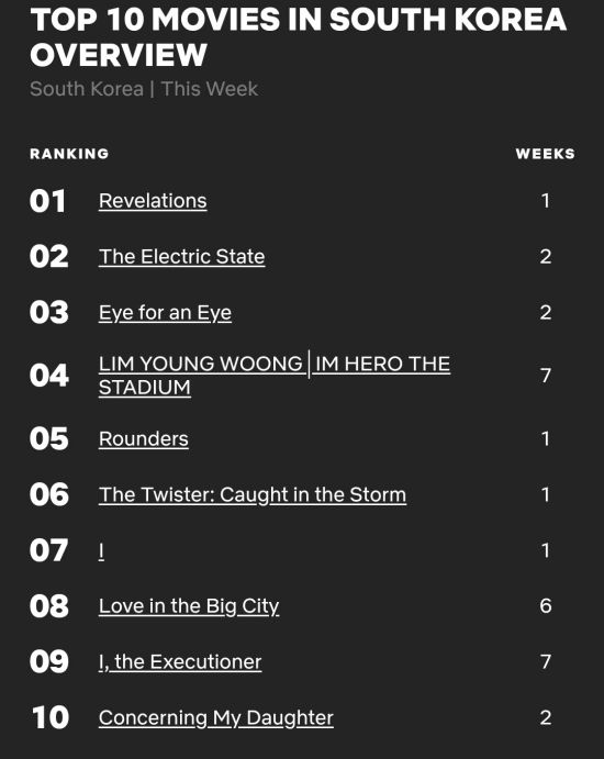 (엑스포츠뉴스 이정범 기자) 임영웅의 영화가 넷플릭스에서 꾸준히 사랑받고 있다.