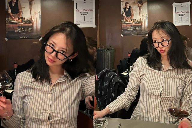 공개된 사진 속 김다솜은 안경은 쓴 채 술집을 찾은 모습이다. 스트라이프 셔츠를 입고 와인 잔을 들고 있는 김다솜이 카메라를 응시하고 있는 가운데, 셔츠 단추 사이가 벌어져 있는 모습이 시선을 강탈한다.