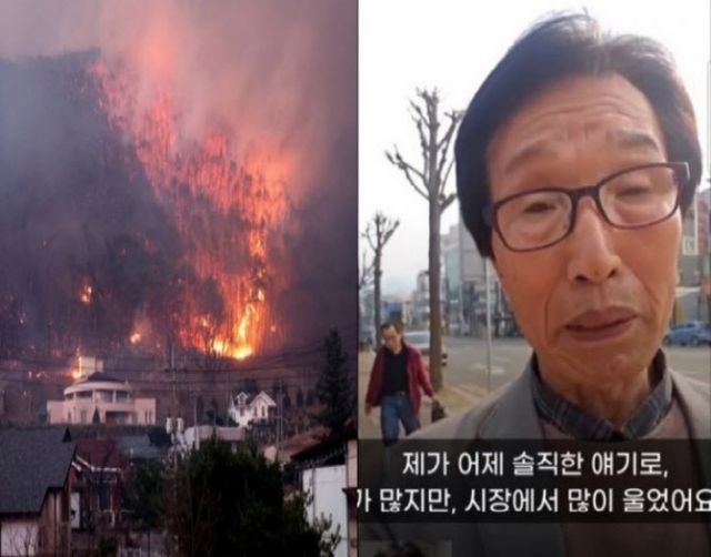 그는 “불이 너무 동시다발적으로 나고 지금 서 있는 자리도 어제는 바람이 불면 몸이 흔들려서 서 있지 못할 정도로 강풍이었다”며 “바람 방향도 앞뒤 좌우를 안 가리고 몰아붙이더니 기어코 이런 사태가 났다”고 탄식했다.
