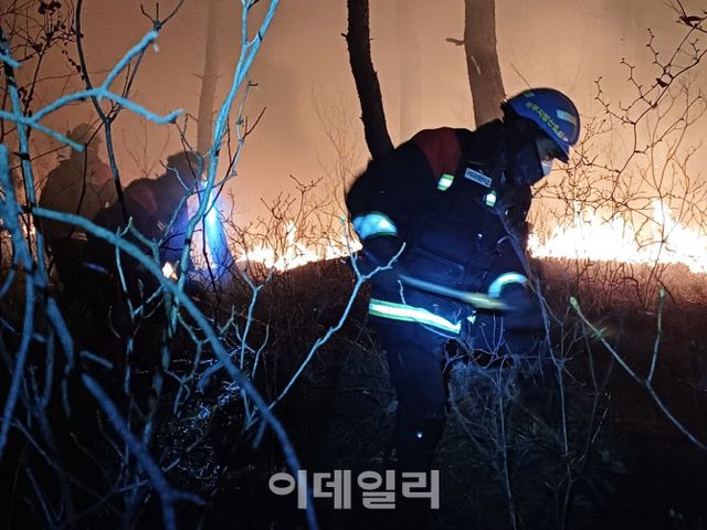 불이 나자 산림당국은 산불 대응 1단계를 발령하고 진화헬기 4대와 진화차량 58대, 진화인력 640명을 투입했다.