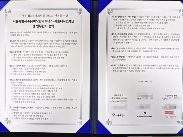 서울시, 서울디자인재단, A사 공동주최로, 행사 기획과 진행은 A사에서 맡았다. A사는 블록체인 및 웹 3.0 관련 사업을 진행해 왔으며, 서울시의 디지털 사업과도 협력관계를 유지해 온 바 있다. 행사에는 해커톤, 스타트업 IR, 강연, 전시 등 다양한 프로그램이 포함됐다.