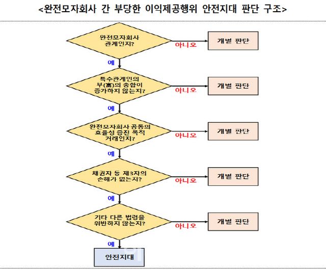 또한 완전모자회사 간 거래에서 특수관계인에게 이익이 귀속될 우려가 낮은 요건을 정하고, 이를 충족할 경우 법 적용을 제외할 수 있는 ‘안전지대’도 만들었다.