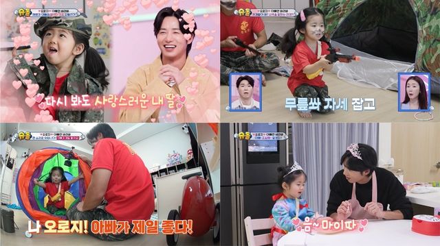 그런가 하면 오종혁은 딸 로지의 최애가 되기 위해 필살기를 꺼내 들었다. 공주 놀이에 푹 빠져 있는 로지를 위해 드레스에 왕관까지 풀세팅해 왕비로 변신하는가 하면, 해병대 캠프를 오픈해 로지의 흥미를 유발했다.