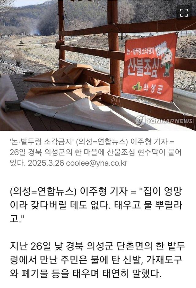 산불 연기 보이는데도 논·밭두렁서는 여전히 불법 소각바로 눈앞에 산불 연기가 보여도그냥 태우고 물 붓겠다고…
