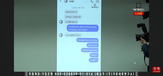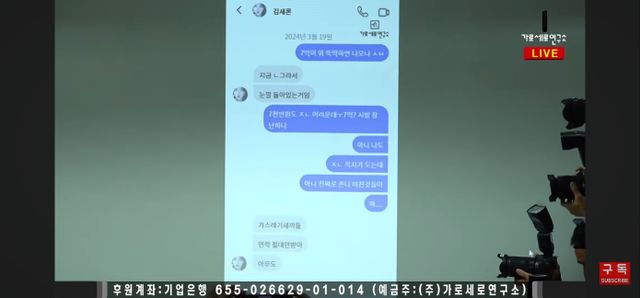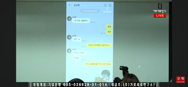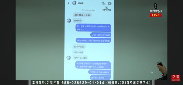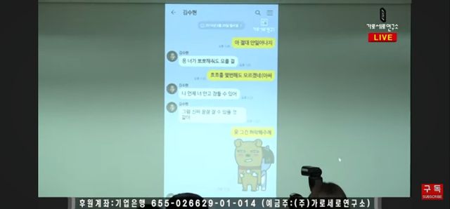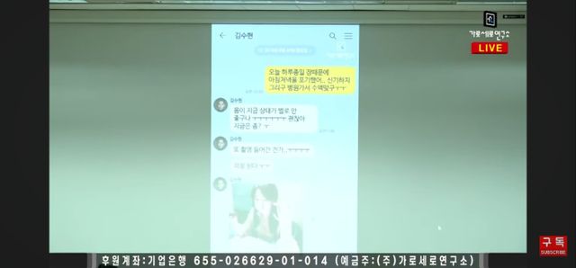 앞서 유가족은 고인의 휴대전화 포렌식을 진행했다. 기자회견에서 부 변호사는 포렌식 결과로 나온 자료라면서 김수현과 김새론이 주고 받았다는 카카오톡 메시지를 공개했다.
