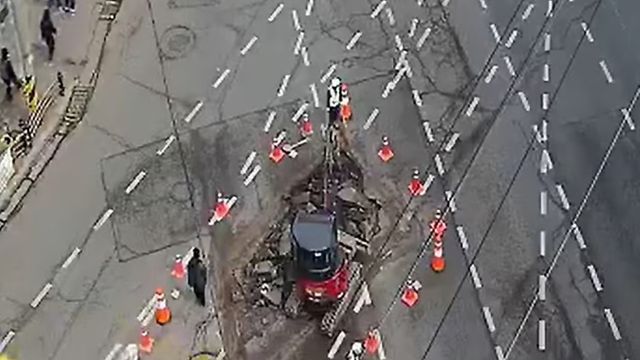 27일 인천 검단사거리역 일대에서 발생한 싱크홀 의심 사고 현장 / 도시교통정보센터 CCTV
