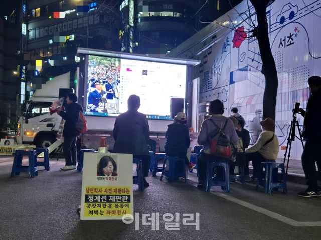 황교안 전 국무총리가 이끄는 부정선거방지대(부방대)를 주축으로 한 이 시위대는 ‘탄핵반대 대통령 지지’ 등 손팻말을 든 채 거리를 맴돌고 있었다. 이들은 “좌파판사 정계선은 북으로 가라”고 소리를 지르며 거리를 활보했다. 한 중년 남성 참가자는 “껍질을 벗겨놔야 한다”며 “서초 수준이 떨어진다. 판사들 다 추방해야 한다”고 했다.