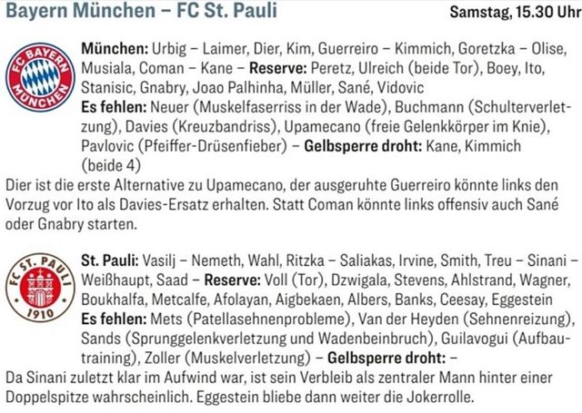 뮌헨은 4-2-3-1 포메이션을 가동할 것으로 보인다.
