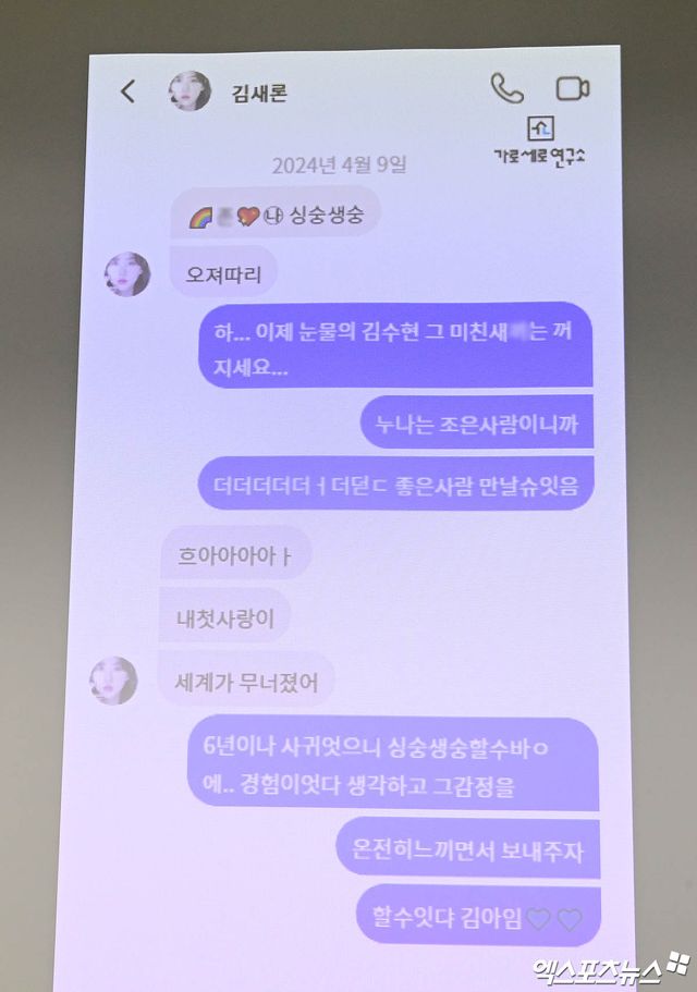 27일 오후 서울 서초구 모처에서 故 김새론 유족 측이 김수현이 김새론이 미성년자 시절일 때부터 교제를 했다고 주장, 연애 증거를 공개했다.