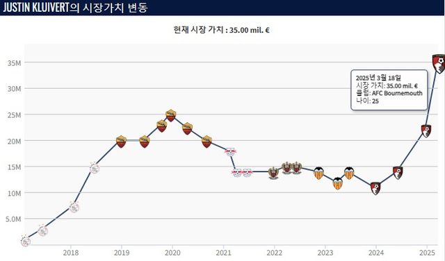 클라위버르트는 '트란스퍼마르크트'에 따르면 현재 3500만 유로(약 552억원)다. 그의 몸값은 현재 최고점이다. 나이도 전성기를 향해 가고 있는 만큼, 앞으로 이 가격은 더 오를 수도 있다. 토트넘이 영입하려면 지금이 가장 현명한 선택이다.
