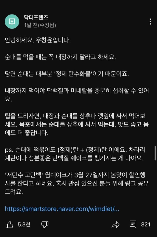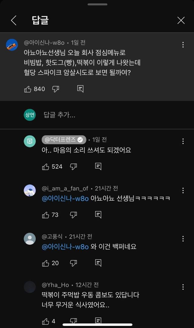 댓글도 듣기좋은 말에 만족해보인다출처 - 닥터프렌즈 유튜브