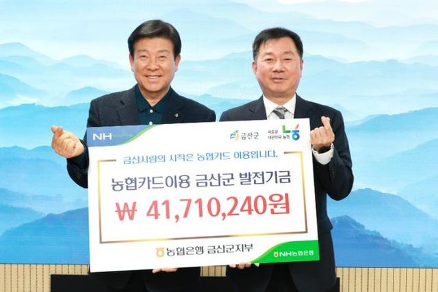 [파이낸셜경제=김예빈 기자] NH농협은행 금산군지부는 지난 26일 금산군에 금산사랑발전기금 4171만 원을 전달했다.