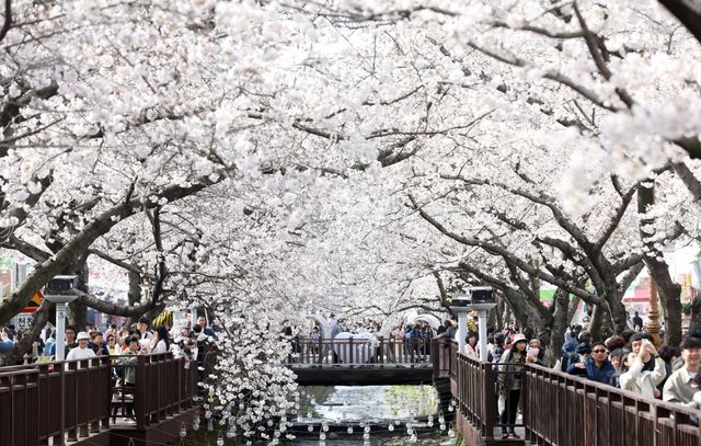 지난해 3월 국내 대표 벚꽃 축제인 진해군항제가 열리고 있는 경남 창원시 진해구 여좌천 모습. / 연합뉴스