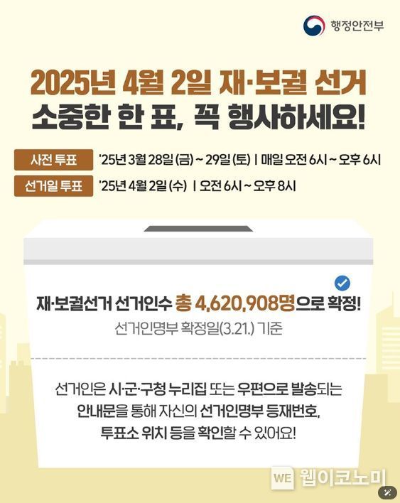 (웹이코노미) 2025년 4월 2일 재·보궐선거, 소중한 한 표 꼭 행사하세요!