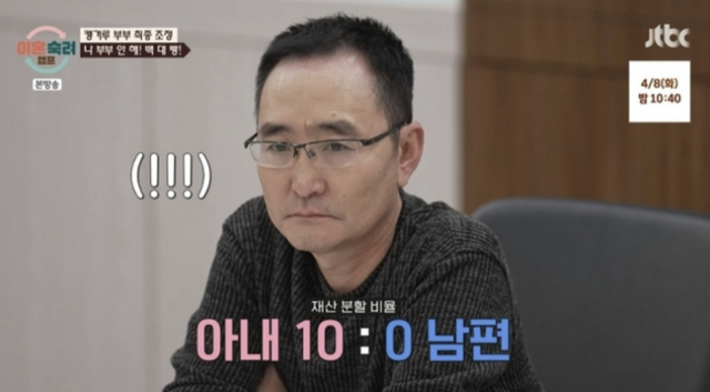 또 이들 부부의 경제 생활에 대해 들어본 조정장은 “받은 게 없어도 이혼하고 나가서 살아야 하는 걸 고려하면 최소한 10%는 줘야한다”고 제안했고, 아내는 “저 사람 병원도 가야하니까 9:1 해드리겠다”고 답했다.