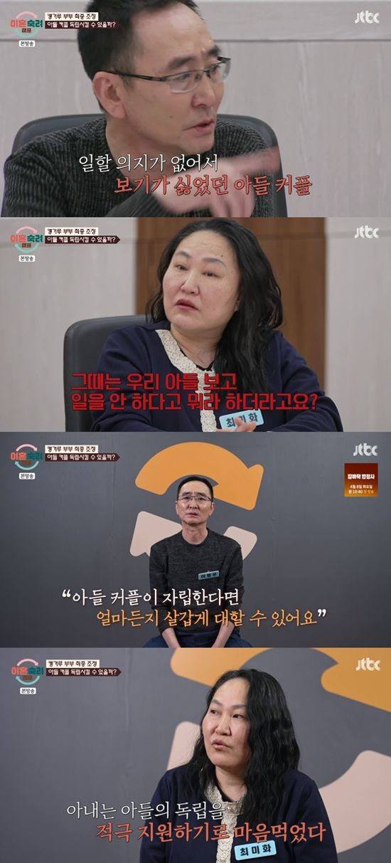 이날 남편은 아들 커플의 자립을 요구했다. 남편은 "왜 제가 아들 커플이 자립해야 한다고 얘기하냐면, 일할 의지가 없어 보여서 그런 거다. 집안에서 같이 지내면서 뭐라도하면 제가 미워할 이유가 없다"고 전했다.