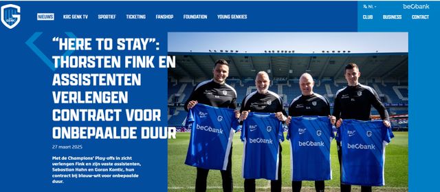 헹크는 28일(한국시간) 구단 홈페이지를 통해 "토르스텐 핑크 감독과 그의 코칭 스태프들이 계약을 연장했다. 챔피언스리그 플레이오프가 눈앞으로 다가온 가운데 핑크 감독과 그의 코치인 제바스티안 한, 고란 콘티치는 헹크와 무기한 계약을 연장했다"고 발표했다.
