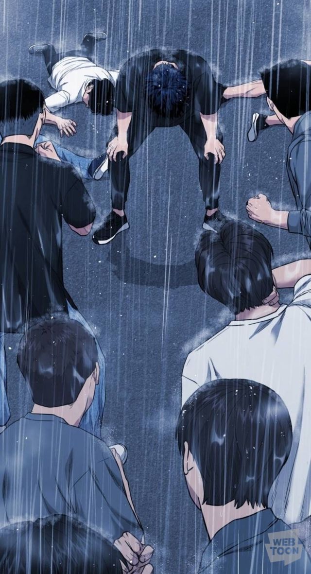 이어지는 컷에서 빗속에서 누군가 쓰러져 있고,