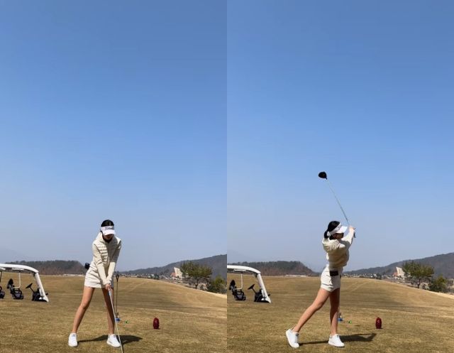 영상 속에는 화이트 톤의 골프웨어를 입은 소희가 공을 치자 주변에서 "굿샷"이라며 감탄사를 내뱉는 모습이 담겨 있다.