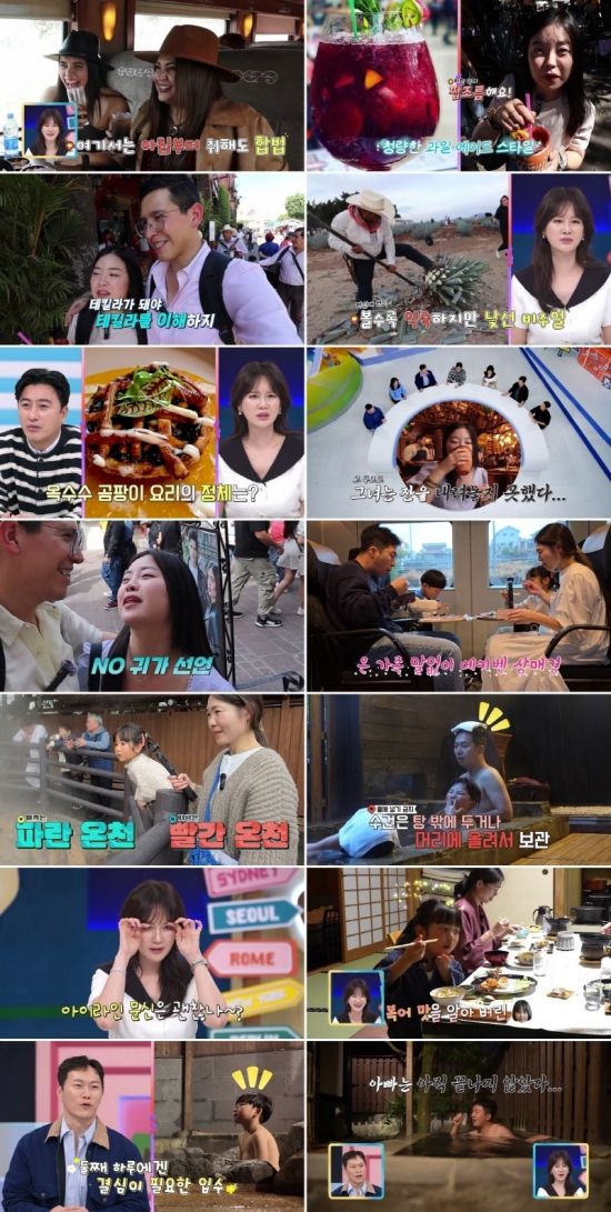 먼저 ‘멕시코 패밀리’ 허수정X파블로 부부가 등장해 인사를 나눴다. 지난 방송에서 한국과 멕시코의 자존심을 건 ‘매운맛’ 대결을 벌였던 이들은 이날 “멕시코의 국민 술 ‘테킬라’의 본고장을 가보겠다”고 선포한 뒤, 테킬라 지역으로 가는 특별한 교통편인 ‘테킬라 기차’에 탑승했다. 그런데, 이 기차는 아침 9시 출발 때부터 무제한 테킬라와 칵테일을 제공해 놀라움을 안겼다. 이를 지켜보던 안정환X이혜원 부부는 “우리도 첫 만남에서 테킬라를 마셨다”며 공감하더니, “당시 테킬라가 유행이라 맛도 모른 채 신기한 기분으로 마셨던 것 같다”고 추억을 소환해 웃음을 안겼다. 모두가 ‘테킬라 기차’의 가격을 궁금해 한 가운데, ‘멕시코 패밀리’는 “우리가 탄 좌석은 1인당 26만 원 정도로, 테킬라에 관한 설명과 경험 비용을 따져본다면 값어치가 충분하다는 느낌이 들었다”고 밝혔다.