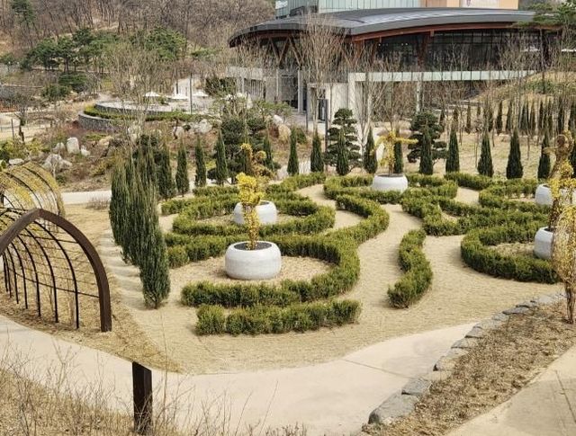 또 로키향나무길과 다양한 초화류를 식재해 화사한 봄 정원을 연출했다 토피어리 정원의 화분은 폐플라스틱을 재활용한 친환경 화분이다.