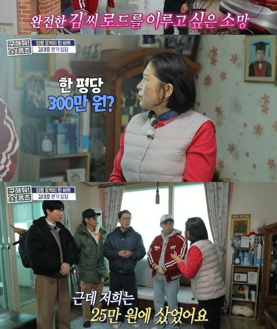 본가에 도착한 김대호는 어머니에게 "여기 땅값이 많이 올랐다던데"라고 물었고, 김대호의 모친은 "자세히는 모르겠는데 한 평당 300만원? 저희는 25만원에 샀다"라고 답했다.