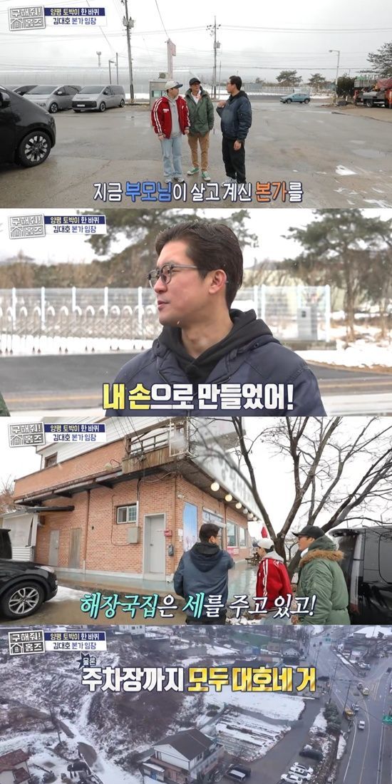 이날 양평 출신인 김대호는 양세형, 박준형과 함께 양평 임장을 떠났다. 김대호는 "개군에 내가 직접 만든 집이 있다. 지금 부모님이 살고 계신 본가를 내 손으로 만들었다. 사촌 형이랑 셋이서 시멘트까지"라며 사촌과 함께 건축 과정에 참여했음을 강조했다.