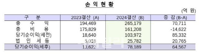 올해는 법정적립금(2조 3457억원)과 농어가목돈마련저축장려기금 241억원을 제외한 8조 273억원을 법인세 등으로 세금으로 납부하는 셈이다.