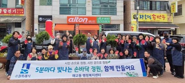 [와이뉴스] 수원시 팔달구 매교동은 지난 27일 통장협의회와 단체원들이 참여하여 매교동 관내 6개소에 '손바닥 정원'을 조성했다.