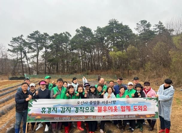 [와이뉴스] 오산시 중앙동 새마을회는 지난 27일, 중앙동 관내 8개 단체 회원 20여 명과 함께 부산동 휴경지에 감자를 심었다.