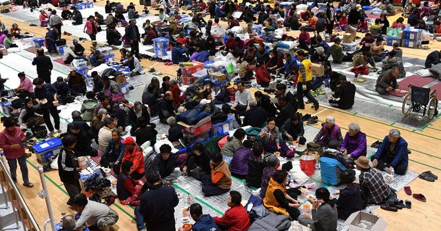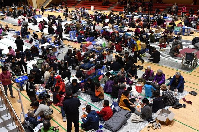 27일 오후 경북 영덕군 영덕읍 영덕국민체육센터에서 지품면 등 산불 피해 이재민들이 대한적십자사 등 자원 봉사자들이 준비한 식사를 하고 있다. / 뉴스1