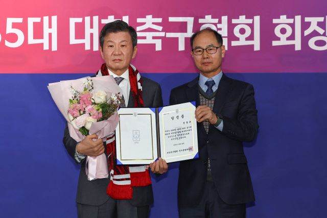 정 회장은 허정무 전 대표팀 감독, 신문선 명지대 기록정보과학전문대학원 스포츠기록분석학과 초빙교수와 경쟁해 총유효투표수 182표 중 156표를 얻으며 득표율 85.7%의 압도적인 지지를 받았다.