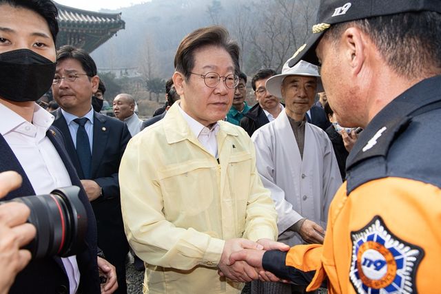 이 대표는 법정 출석 대신 전날부터 경북 안동, 의성, 청송, 영양 지역의 산불 피해 현장과 이재민 대피소, 피해자 분향소 등을 방문했다. 28일 오전에는 대전시당 회의실에서 열린 현장 최고위원회의에 참석한 후 국립대전현충원에서 열리는 서해수호의 날 기념식과 경남 산청 산불현장지휘소 및 이재민대피소를 방문할 예정이다.