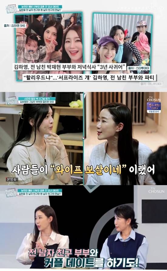김하영은 "(지금) 남자친구 사귀면서 저는 전 남친과 일을 계속 같이 하니까 마음에 걸리고, 오빠도 마음에 걸려 했다. 그래서 서로 보게 했다. 인사하고 전 남자친구 아내랑 지금 남자친구랑 같이 밥도 먹었다"고 전하기도 했다.