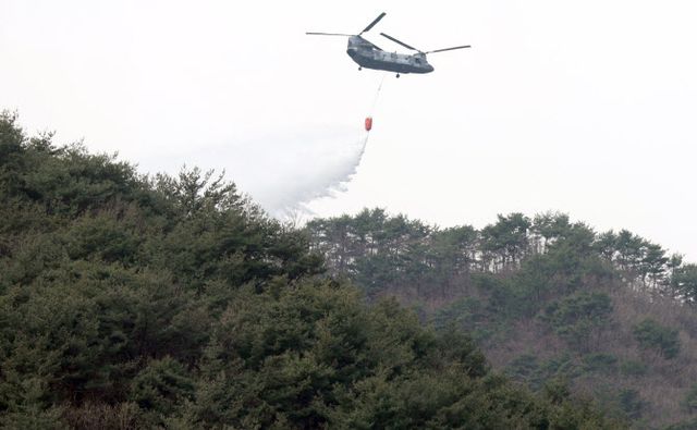 이날 진화작업에 투입된 헬기는 주한미군이 보유한 수송헬기인 치누크(CH-47) 등 주한미군과 국군 헬기 17대도 포함됐다.