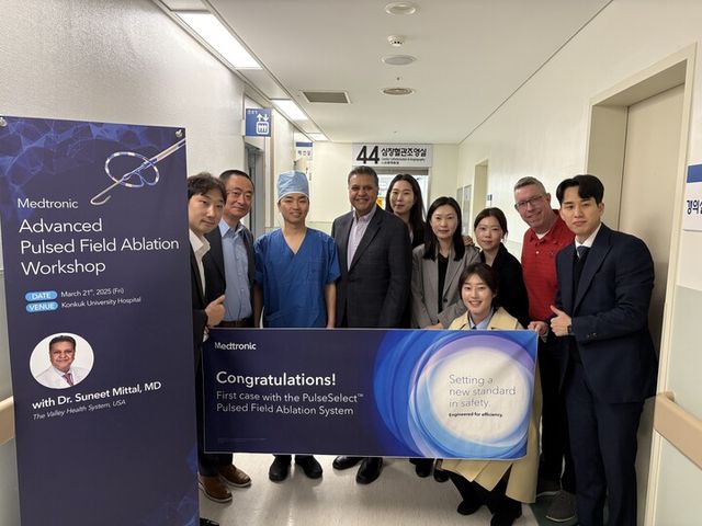 이번 시술은 21일 건국대병원에서 열린 ‘Advanced Pulsed Field Ablation Workshop’에서 시행됐으며, 부정맥 치료 분야의 세계적 권위자인 서닛 미탈 박사(Dr. Suneet Mittal)와 권창희 건국대병원 심장혈관내과 교수가 함께 집도했다.