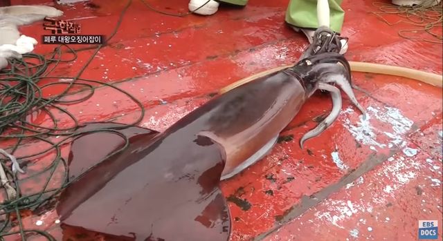 어부들이 직접 잡은 훔볼트오징어로 만든 식사 / 유튜브 'EBSDocumentary (EBS 다큐)'