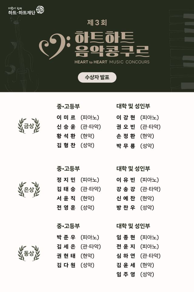 제3회 하트하트음악콩쿠르 수상자 사진 / 하트-하트재단 제공