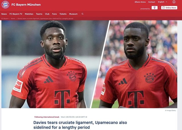 수비진에 많은 변화가 있다. '캡틴' 마누엘 노이어 골키퍼부터 알폰소 데이비스, 다요 우파메카노까지 결장할 예정이다. 특히 데이비스와 우파메카노는 '시즌 아웃'이라는 치명적인 부상을 당했다.
