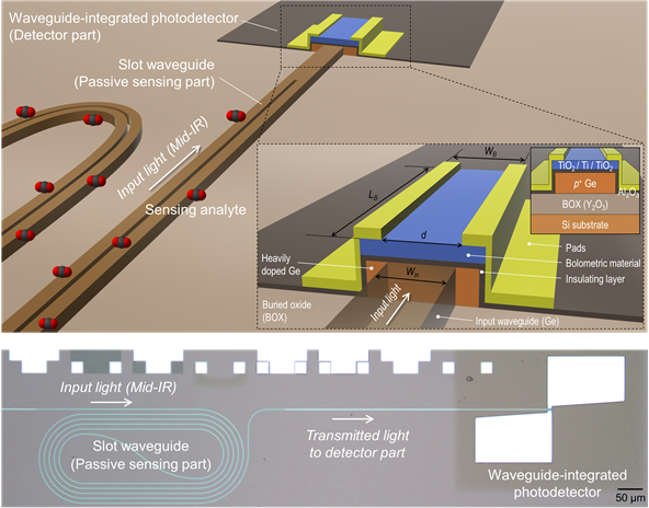 이에 연구팀은 실리콘과 같은 주기율표 4족 원소인 저마늄(Germanium) 반도체를 기반으로 한 광학 플랫폼을 활용해, 넓은 대역의 중적외선 검출 성능을 확보하면서도 동시에 상온에서 안정적으로 동작할 수 있는 새로운 형태의 도파로형(waveguide-integrated) 광검출기를 개발했다.