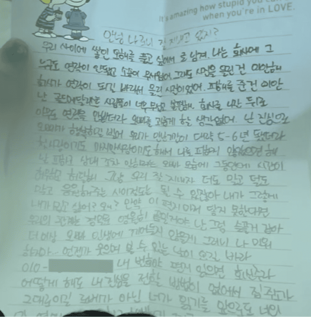 김새론의 자필 편지, "첫사랑이기도 마지막 사랑이기도 했어"
