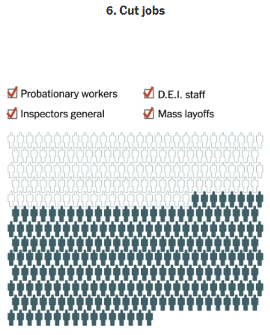 6. 추가적인 인원감축을 실시함. 인턴, 감찰관, DEI 관련자, 그리고 대량해고
