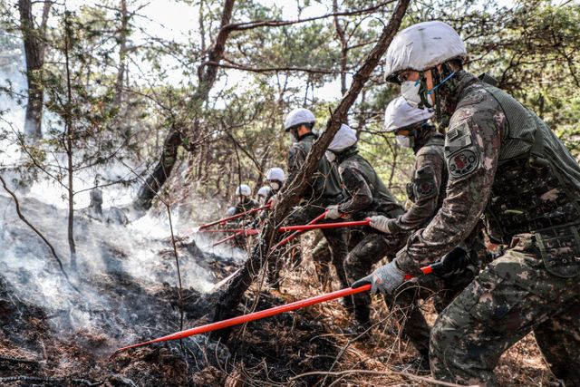 국방부는 “장병들의 안전을 최우선으로 고려한 가운데 산불 진화, 의료 지원, 안전통제, 공중 살수 등 산불 진화 관련 임무에 투입하고 있다”며 “지상 투입 장병과 헬기 조종사 및 운용요원들이 임부 복귀 시 충분한 휴식을 부여하고 있고, 투입 장병들의 건강 관리에도 만전을 기하고 있다”고 밝혔다.