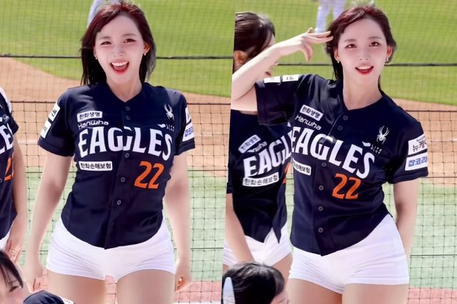 공개된 영상은 한화 이글스 경기에서 응원 무대를 꾸미고 있는 하지원과 동료들의 모습이 담겼다. 유니폼에 화이트 초미니 핫팬츠를 입은 하지원은 탄성이 느껴지는 탄탄한 허벅지를 자랑, 특유의 청순한 미모로 베이글녀다운 매력을 발산했다.