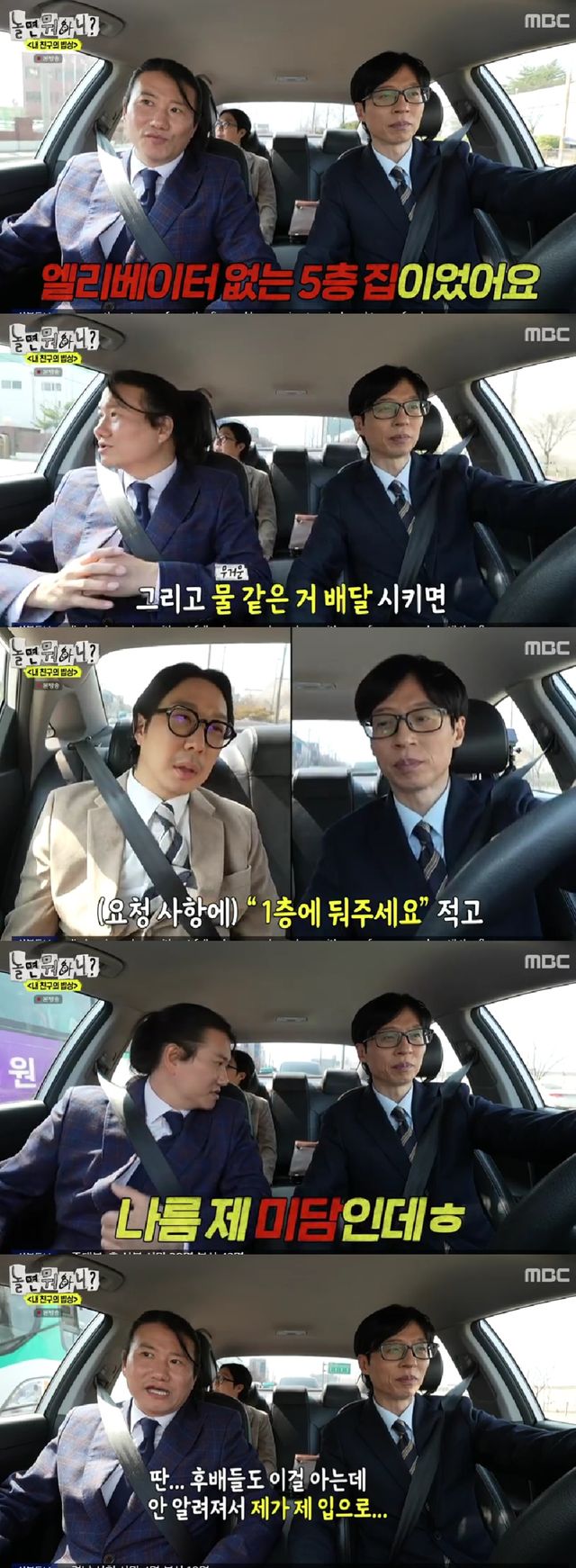 이어 그는 "물 같은 거 배달 시키면 (요청 사항에) 1층에 놔달라고 적는다"면서 "이 얘기를 하는 이유는 나름 제 미담이다. 아무리 얘기를 해도 다른 후배들도 아는데 안 알려준다"고 자신의 미담을 셀프로 공개해 웃음을 안겼다.